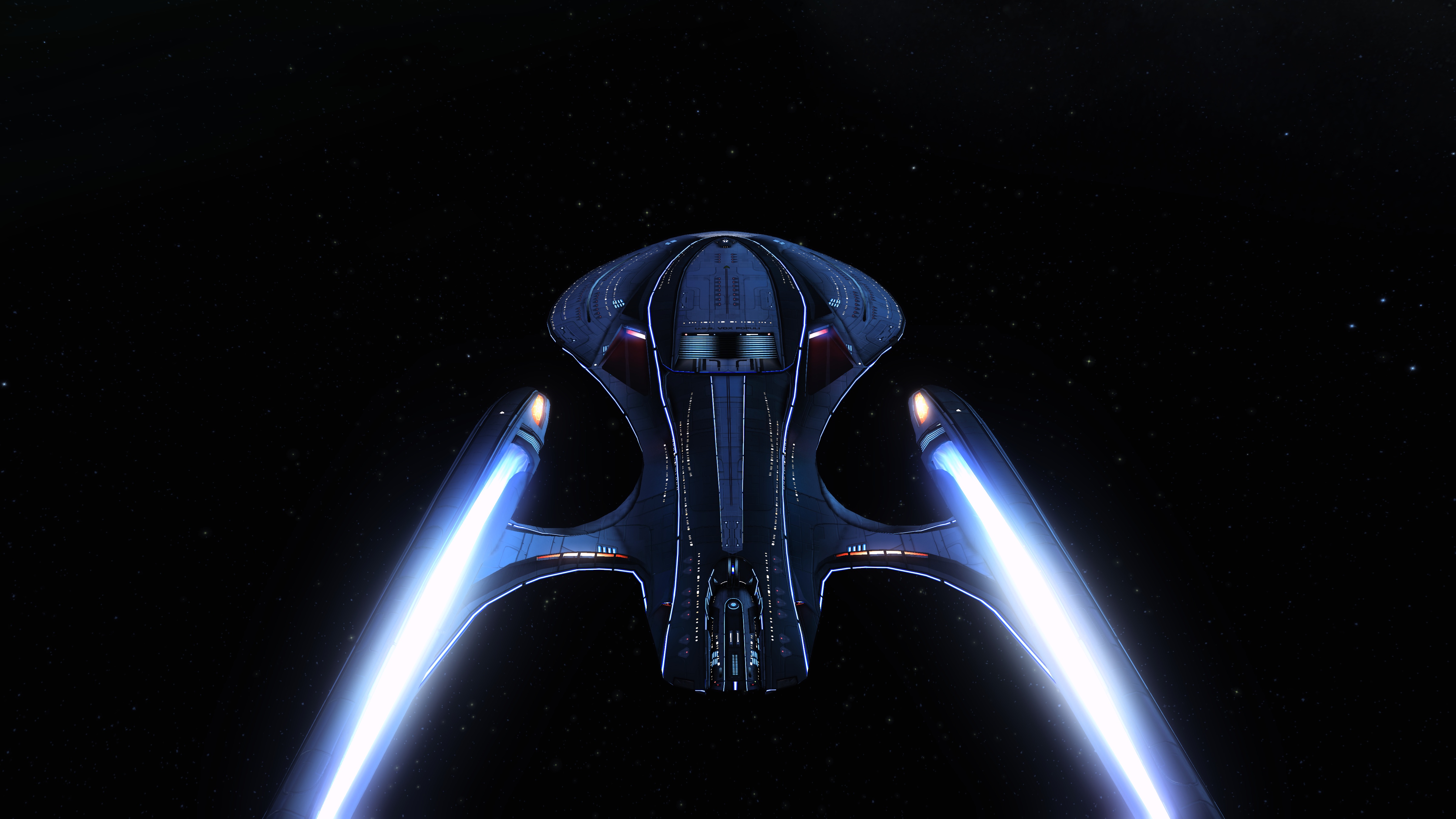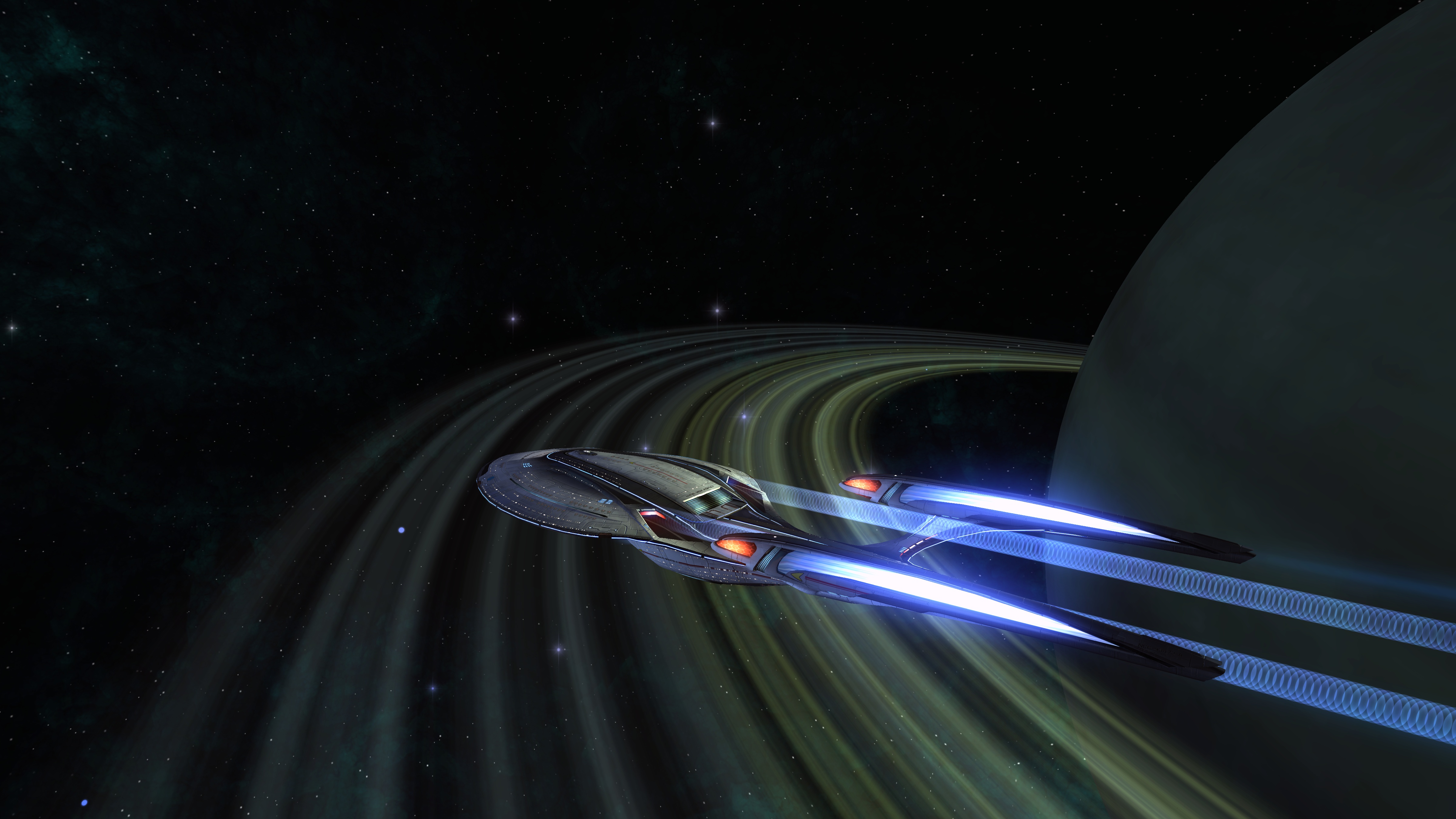 - Wie man in der Galerie sehen kann, hat die Föderation blaue Lichteffekte vom [Kovariantes Aegis-Schildarray] und die Klingonen-Spieler haben rote Lichteffekte. Romulaner haben die Lichtfarbe der dazugehörigen Fraktion, denen sie sich angeschlossen haben.