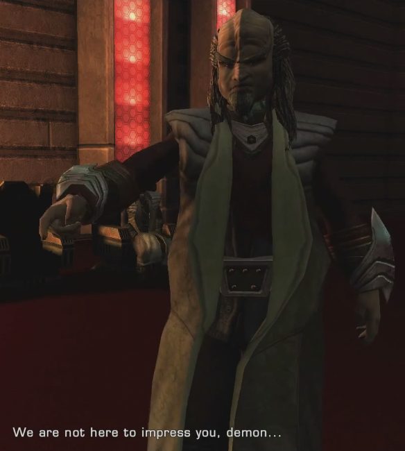 | NSCs | B'vat • Galera • J'mpok • Jurlek • K'Gan • K'men • K'Valk • Kagran • Kahless • Koren • Nin'Yan • Alexander Rozhenko • Sirella • Temek • Torg • Worf | |