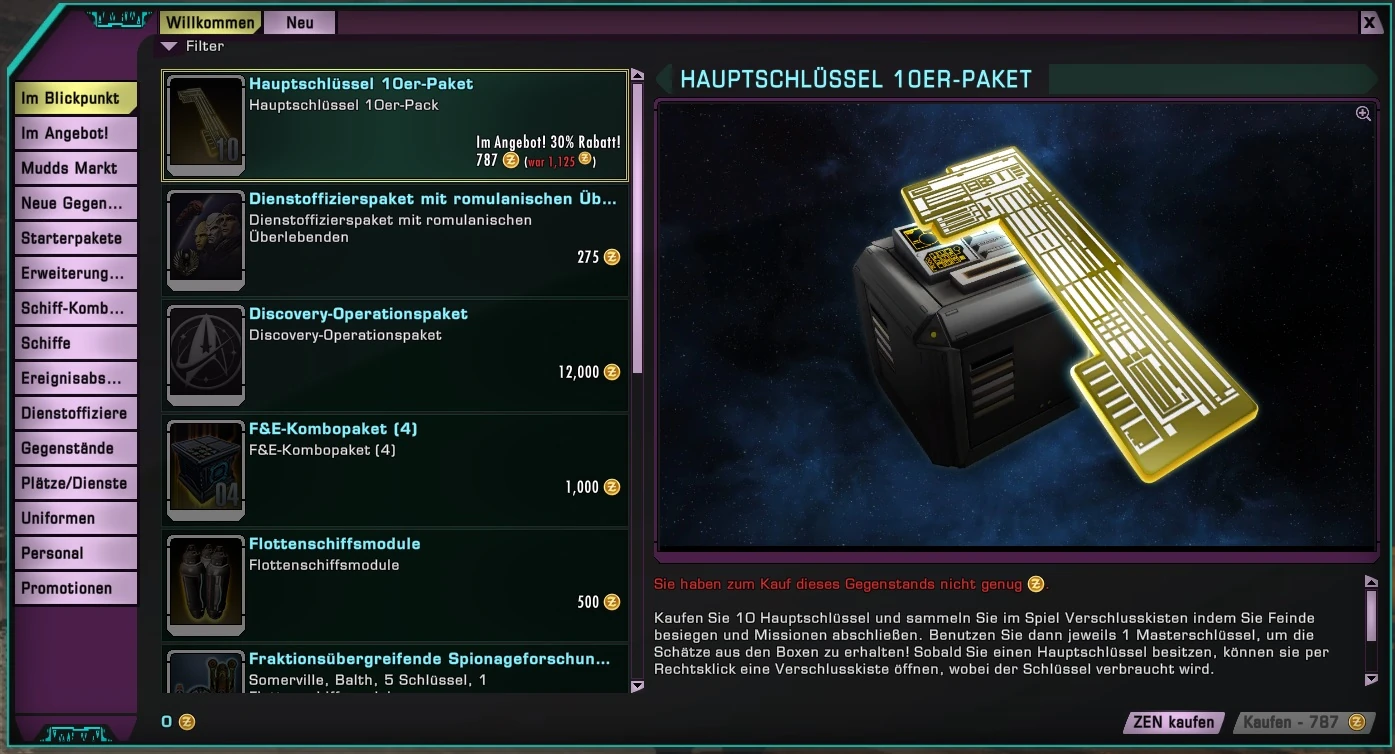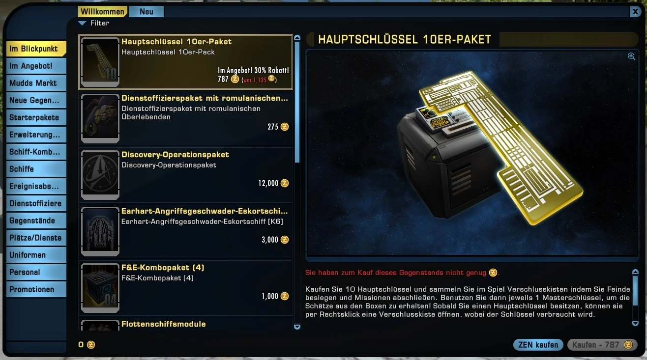 Die Erscheinung des Zen Store bei einem Spieler des Dominions, der klingonisch orientiert ist.