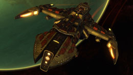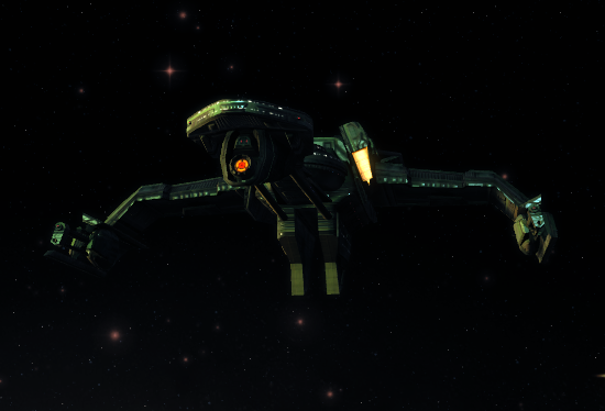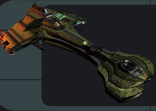 The D’Kora Class is a Ferengi built Marauder, designed to function as a Freighter for the Ferengi Alliance, exporting and importing trade goods to and from the Ferengi Alliance. The Marauder has also been known to serve as a Ferengi Battle Cruiser, possessing impressive firepower and the ability to survive over an extended period of time in certain circumstances. The ship is also equipped with a Battle Module, which allows the Marauder to literally transform into a configuration designed specifically for combat situations. Using this module and combining it with an EMP Pulse Generator as well as Swarm Missiles, the Marauder has its own fair share of fearsome weapons to hold its own in combat situations.