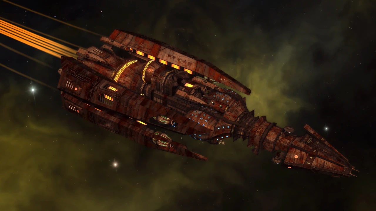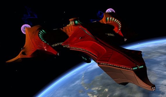 The Klingon Flagship Battlecruisers are heavily based upon the original design of the Bortasqu' Battlecruisers. These massive starships are incredibly resilient, but slow to maneuver. The Kahless is the Engineering variant of the line and whilst the wing section are identical to the Bortasqu', the section engineering section is much more bulky with the neck and forward sections following this trend. The vessel itself features a Command orientated bridge officer station and is equipped with an Advanced Quantum Slipstream Drive for incredibly quick and extended travel as well as an Adaptive Emergency Systems ability which, when activated, provides a substantial boost to damage and damage resistance for a short time. This effect is increased by 50% if the starships current hull integrity is below 50%. Additionally, the Kahless features the ability to increase its hull integrity every time the hull is repaired and every time Command abilities are used.
