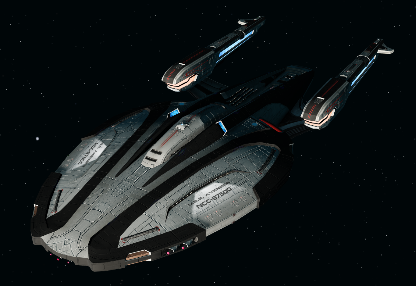 Since the war with the Klingon Empire began, Starfleet engineers have been working on ship designs intended for battle as well as exploration. One of the designs to come out of this effort was the Avenger Class Battle Cruiser. The Avenger Class Battle Cruiser’s design aims to provide a durable warship that is more manoeuvrable than Starfleet’s existing cruisers, and can carry a devastating amount of firepower. However, it does sacrifice a measure of hull strength for this extra manoeuvrability. There is nothing subtle about this starship class. The Avenger’s aggressive silhouette and available firepower makes it a formidable and intimidating presence in any battle.