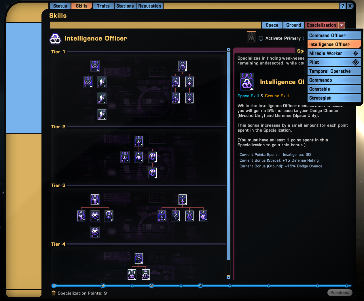 - Click on the 'Intelligence Officer' Specialization.