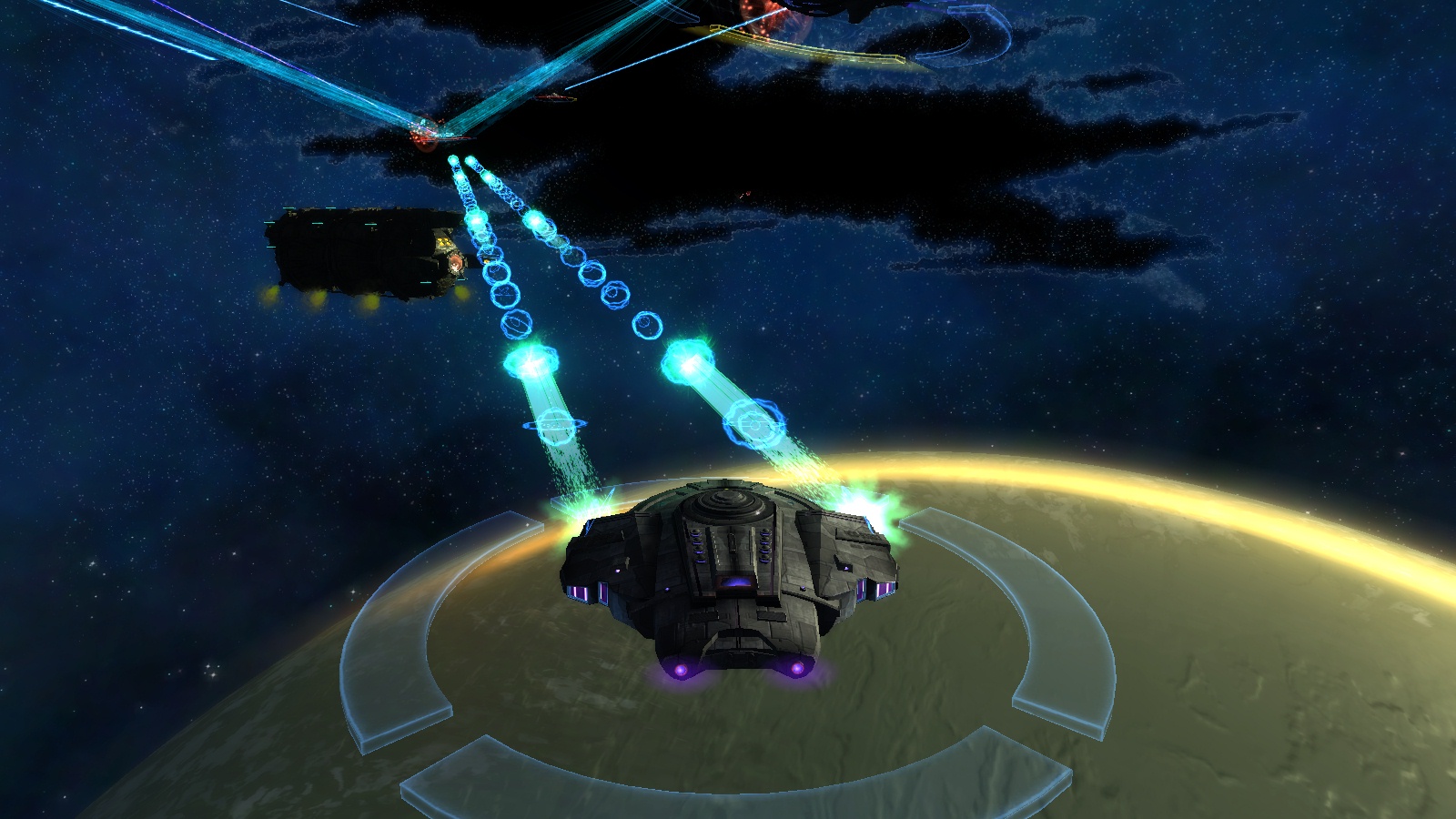 Beam Arrays are the most common and versatile weapons available. They fire a series of average damage beams across a wide arc. Beam weapons are equally effective against starship shields and hull.