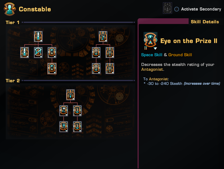 The Constable Specialization is a Secondary Captain Specialization released with Season 14.5. Becoming a Constable will allow you to focus your efforts on a single enemy target amongst many. You’ll suffer reduced effects from other foes, while being more effective at taking your Antagonist down.
