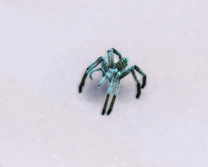The term "Cristal Spinner" is actually a generalization for many different breeds of arachnid life which are typically found in extreme environments. This one was raised on a planet covered in ice and snow, and has coloration to match it's environment. The webs that this breed spins in the wild are actually micro-crystalline lattices known for their brittle nature - they are used to lacerate prey, rather than trap them. This particular spider has been genetically modified to be unaggressive and cannot spin webs.