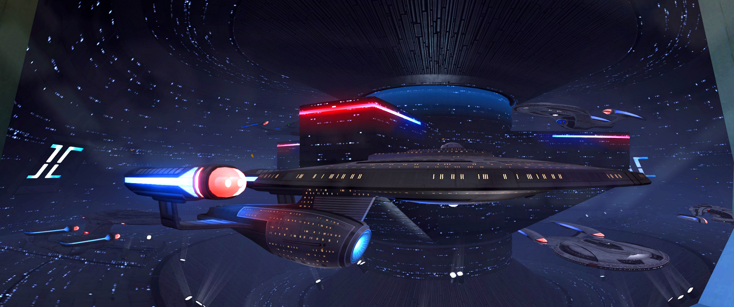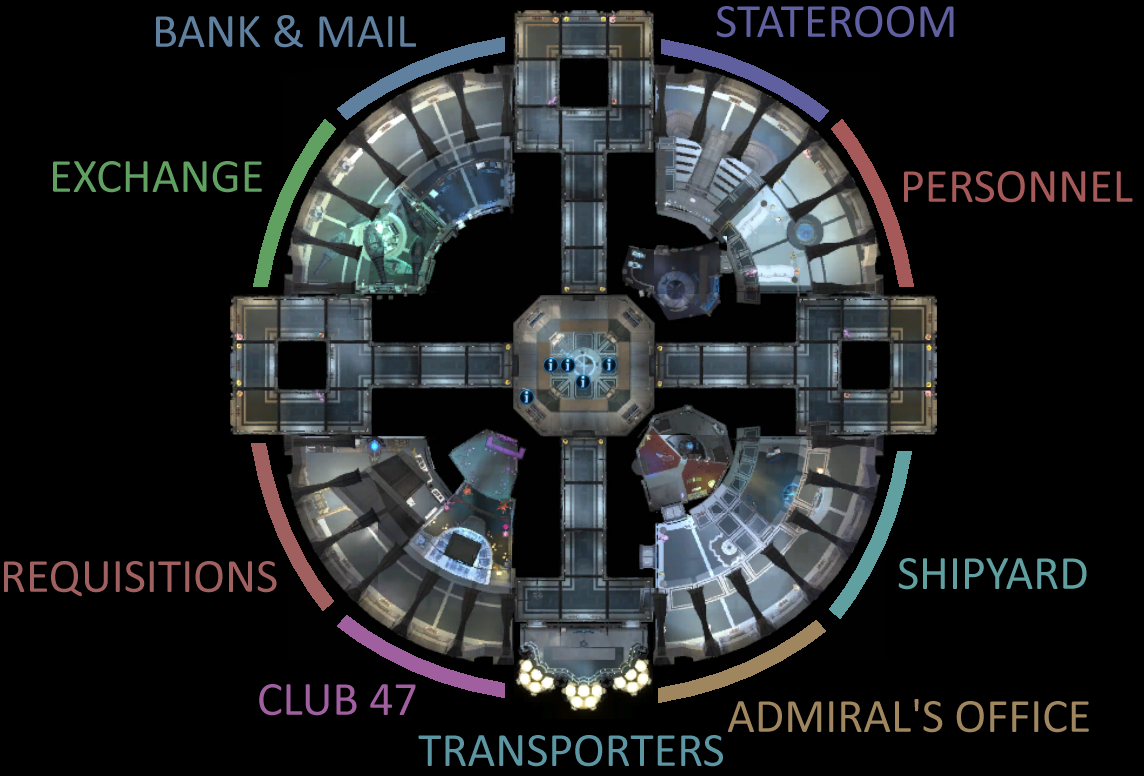 - Most of the interiors were also re-designed. The most drastic changes were made to Admiral Quinn's office, Club 47 and Starship Requisitions - now featuring a window overlooking docked Odyssey Class, Galaxy Class, Armitage Class, Ambassador Class, Vesta Class, Avenger Class, and Regent Class vessels.