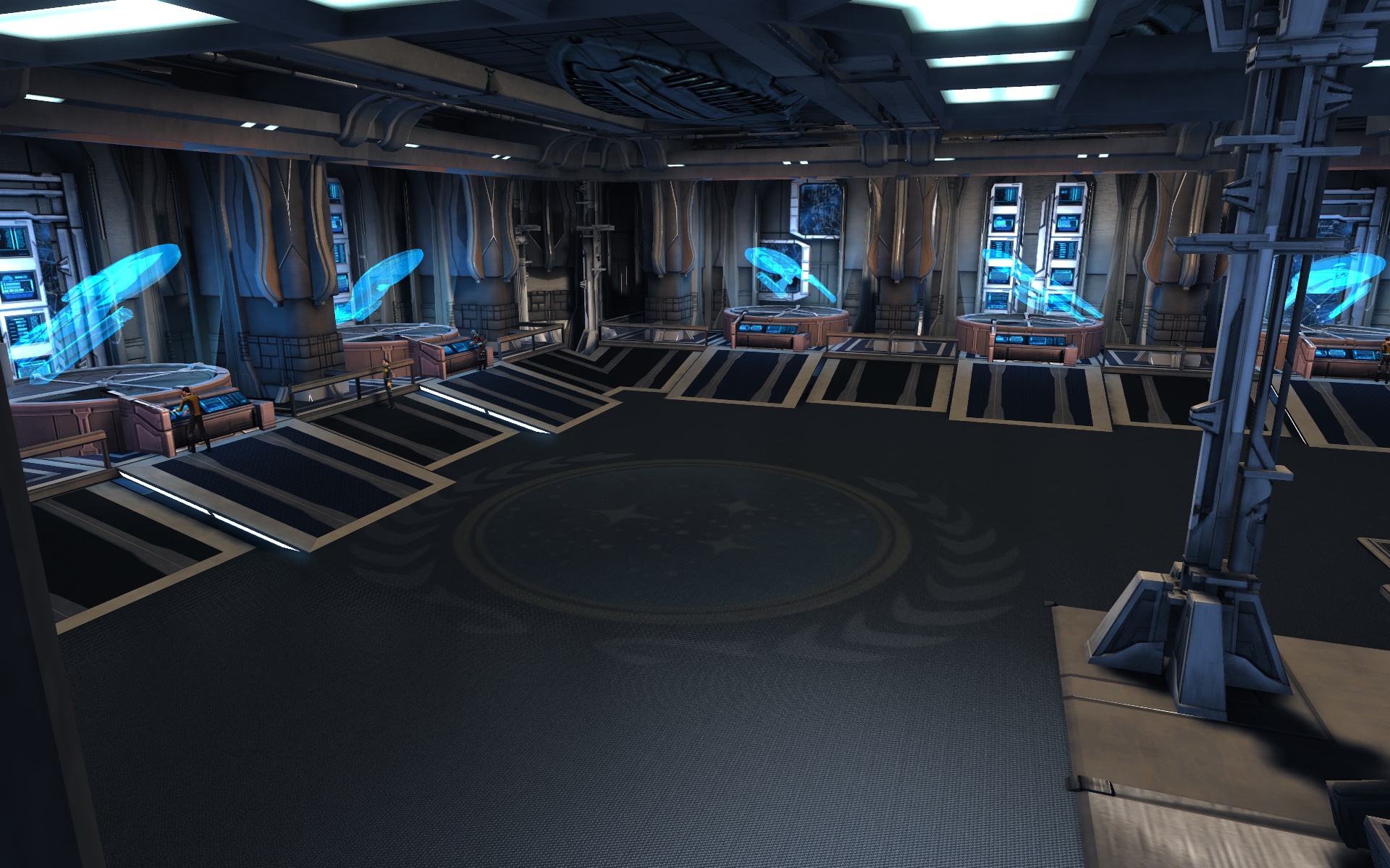 In the center of Spacedock is an Ops-like control center where the main crew works.