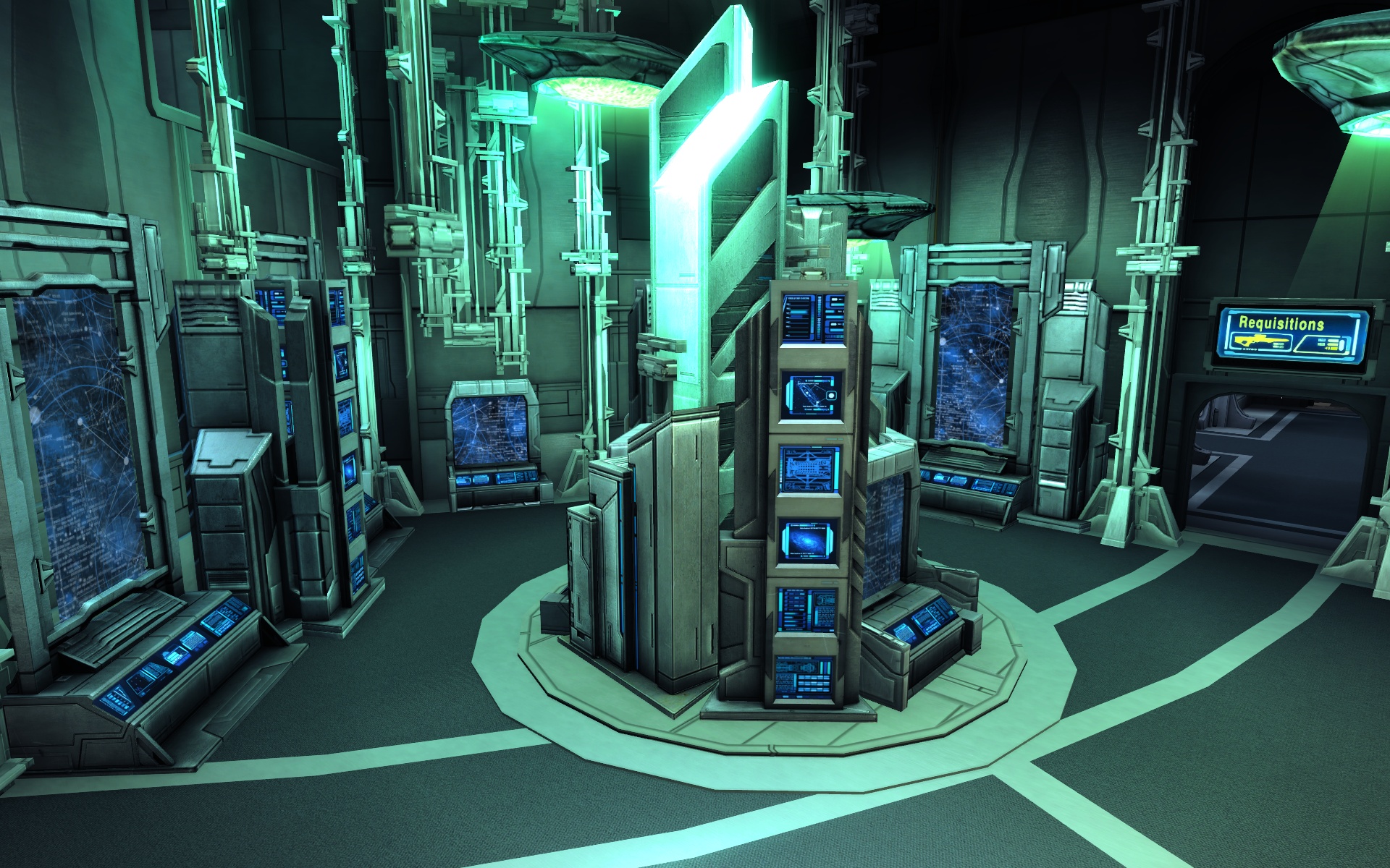 A room accessible only from the Shipyard, Ship Requisitions is where you can requisition weapons, consoles, and equipment for your starship.