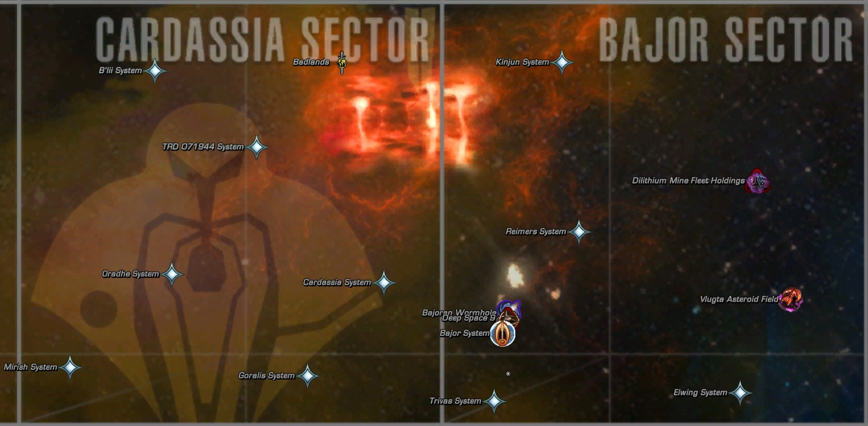 The Fleet Dilithium Mine is a fleet holding , i.e., a dilithium mine run by a fleet and operated by Reman contractors. The Fleet Dilithium Mine System is located in the Bajor Sector and it provides similar amenities as the Fleet Starbase , including mail , exchange , and bank terminals as well as special Duty Officer assignments and daily mining missions. It has identical maps between Klingon and Federation fleets.