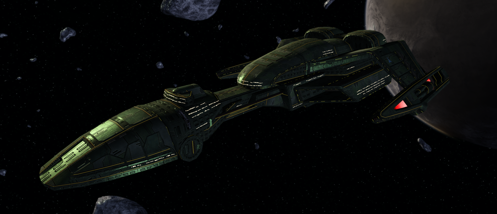 The Vo'devwl Support Carrier is a powerful upgrade to the Vo'Quv-class. This carrier is capable of adopting to multiple roles, thanks to the flexibility offered by its massive twin hangar bays, although like any Klingon Vessel, it was designed with a strong inclination towards combat. As is necessary to command so many small craft, the starship features immense networking and sensor capabilities. All of this is contained by a potent structural integrity field and substantial shielding, and hidden as necessary by a powerful cloaking device.