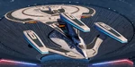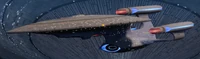 SKIN UNLOCK: Venture Exploration Cruiser Refit, 150,000 OR Legendary Ross Command Exploration Cruiser, 30,000 Based on the Galaxy-class design, the Venture class represents the pinnacle in Starship design. It has a longer more swept neck, and a more faceted main deflector. It also bears details reminiscent of the Sovereign class, such as the raised V-shaped platform on the primary hull detail, and a whiter-colored hull with darker markings. It is also tied with the Monarch class for the largest Exploration Cruiser variant. | ||||