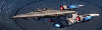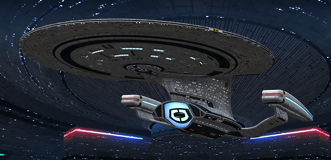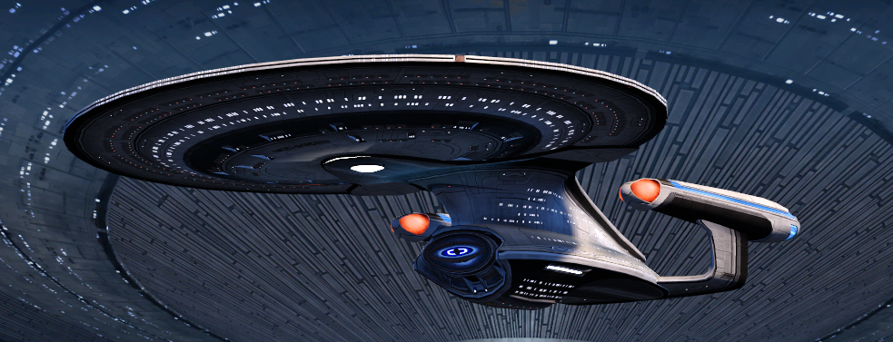 SKIN UNLOCK: Free The Galaxy class was refitted at the turn of the 25th century, after the collapse of the Khitomer Accords in 2399. In response to increased hostility with the Klingon Empire, the newly redesigned ship carries a cloaking device and a devastating spinal lance weapon. The ship class first appeared as an alternate reality version of the U.S.S. Enterprise-D from the Star Trek: The Next Generation episode "All Good Things...". |
