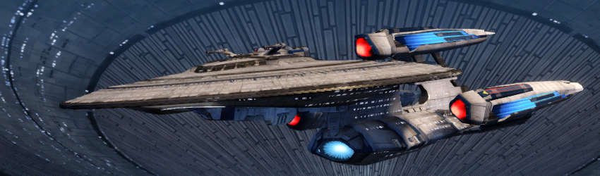 SKIN UNLOCK: Terran Cygnus Battlecruiser, 3,000 A twisted, dark reflection of the Galaxy-class, emblazoned with the 24th Century livery of the Terran Empire. | ||||