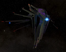 - “Broken Circle”: An Iaidon Dreadnought serves as M'Tara's flagship during the assault on the Iconian Herald Sphere. During an attack on the ship, the I.K.S. Kortar rams it causing severe damage - forcing it to retreat into a gateway. Later, the player along with allied boarding parties, beam aboard to take the flagship.