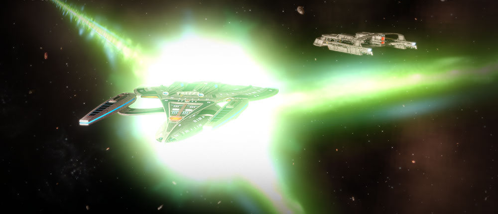 | V | Jubilant Cadence | While this trait is active, defeating enemies or healing allies will grant you one stack of Jubilant Cadence a maximum of once every 4 seconds, which last until you leave combat or are defeated. After reaching 5 stacks, you and your teammates will receive a large boost to speed and turn rate, while also having all bridge officer ability recharge timers reduced. |
