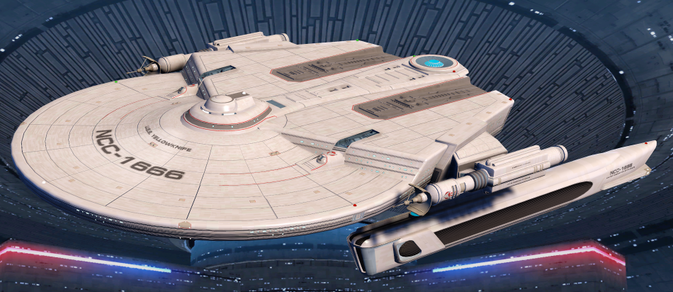 SKIN UNLOCK: Free The Centaur class is based on the Excelsior class, known to be active in the 2370s during the Dominion threat. It has a main saucer section with two aft nacelles at the end of its down-swept pylons. |