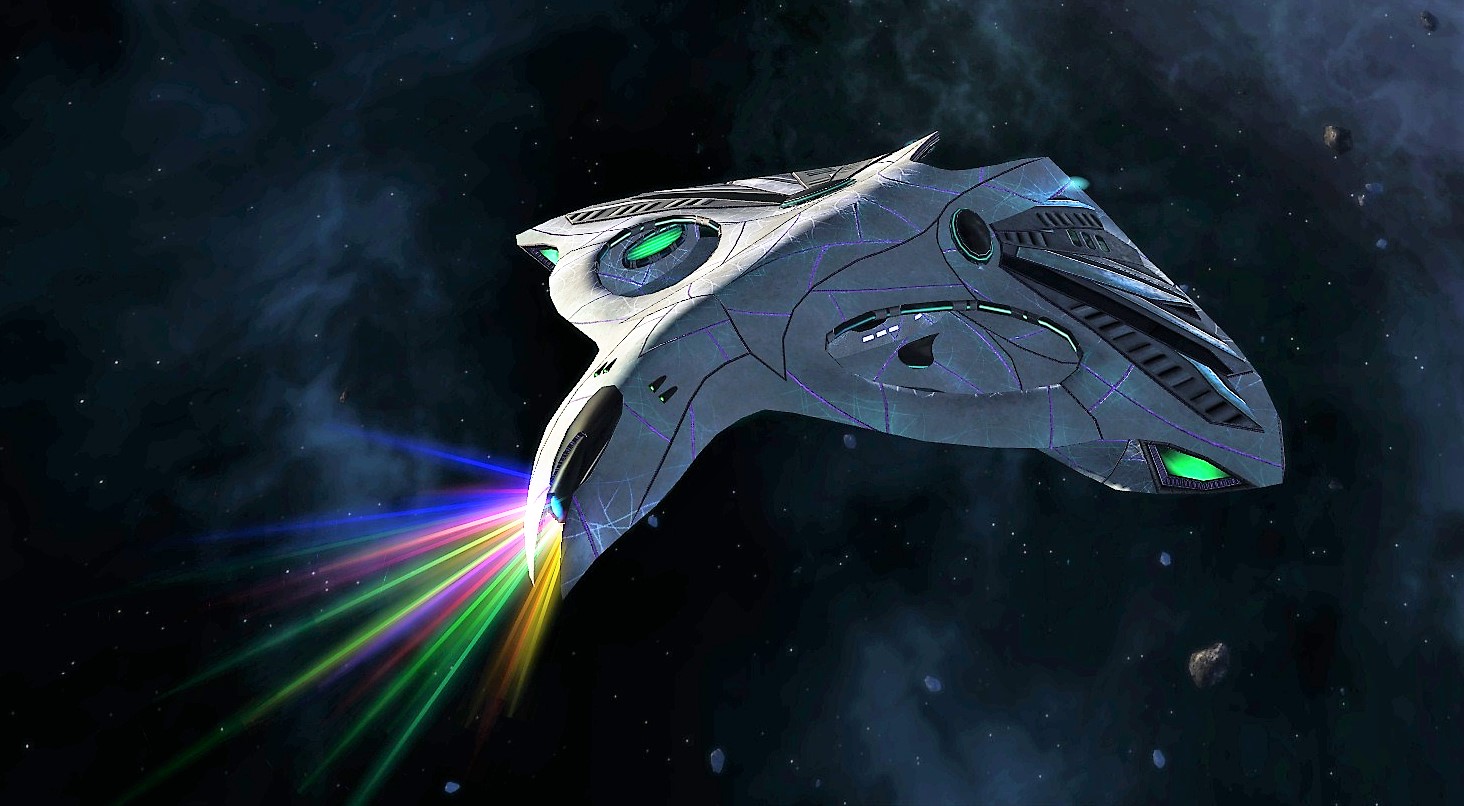 Recently, a new series of ships have been rescued from the clutches of the Tholians – Science Vessels and Destroyers that appear to be Romulan ships from the 29th century. As more of these ships are reclaimed, the Ferengi Lobi Crystal Consortium has been repairing and refitting them for use in modern-day warfare – and then selling them for a modest fee.
