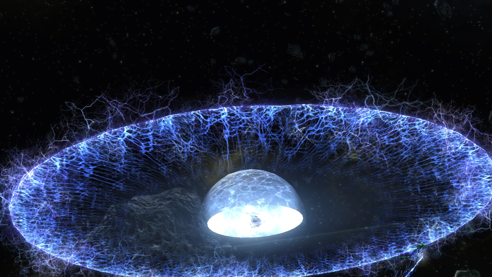 You can overload your Deflector and fire a devastation Destabilized Proton Beam that causes heavy Proton damage over time with 50% shield penetration. Every second the Proton Beam will arc off to a random secondary target within 10km, which will then arc to an additional target. These Proton arcs deal minor damage with 50% shield penetration.
