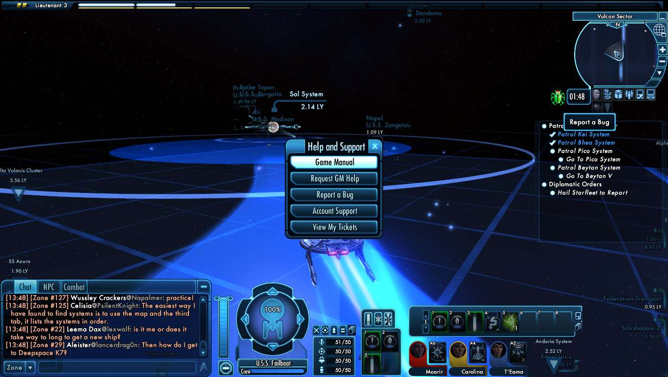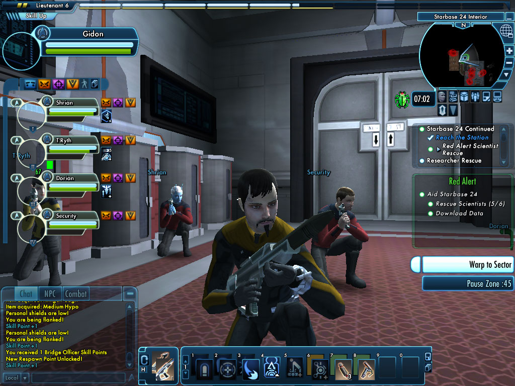 Gameplay revolves around playing a character of desired faction in an open world, with various locations and elements from the Star Trek universe. It features a combination of space, where you take control of a starship, and ground portion of the game, where you control an avatar from the first or third person view. Game starts with a character customization, and a tutorial which introduces player with basic mechanics and available game formats, such as PvE (episodic storyline, PvE Queues), PvP and other content slowly unlocked with leveling.