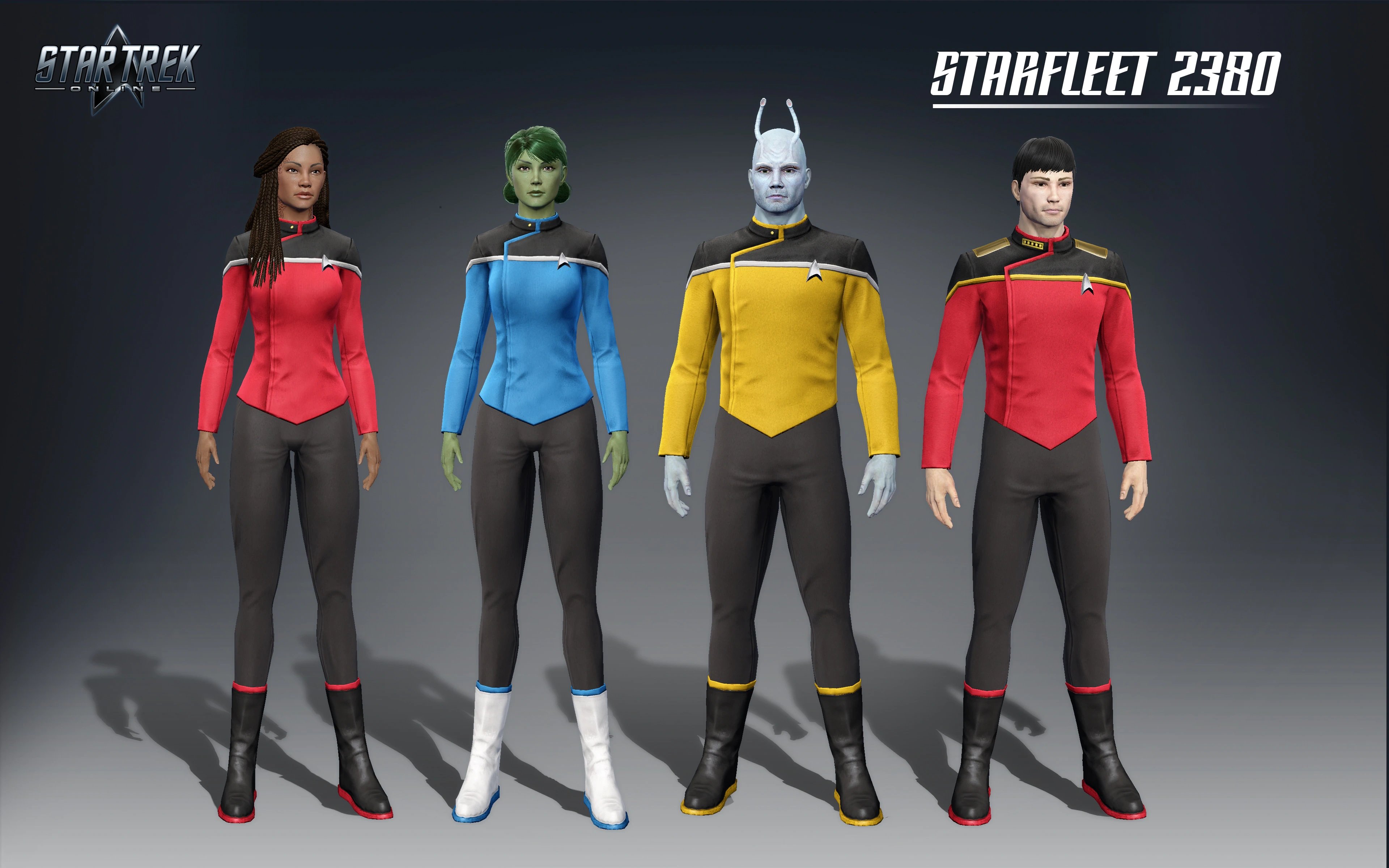 Starfleet 2380 is the uniform worn by Starfleet on support ships in the late 24th Century. The uniform was featured on Star Trek: Lower Decks.