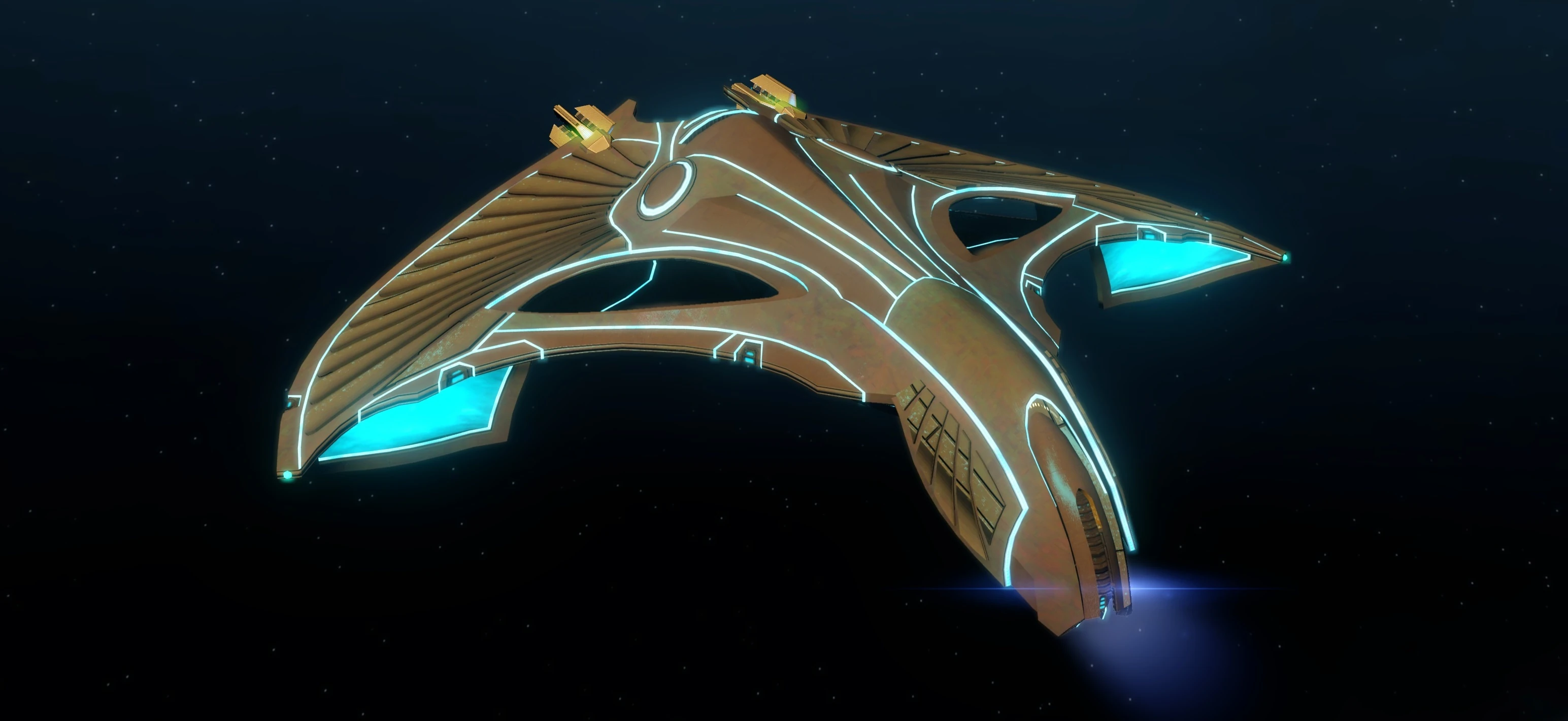 Recently, a new series of ships have been rescued from the clutches of the Tholians – Science Vessels and Destroyers that appear to be Romulan ships from the 29th century. As more of these ships are reclaimed, the Ferengi Lobi Crystal Consortium has been repairing and refitting them for use in modern-day warfare – and then selling them for a modest fee.