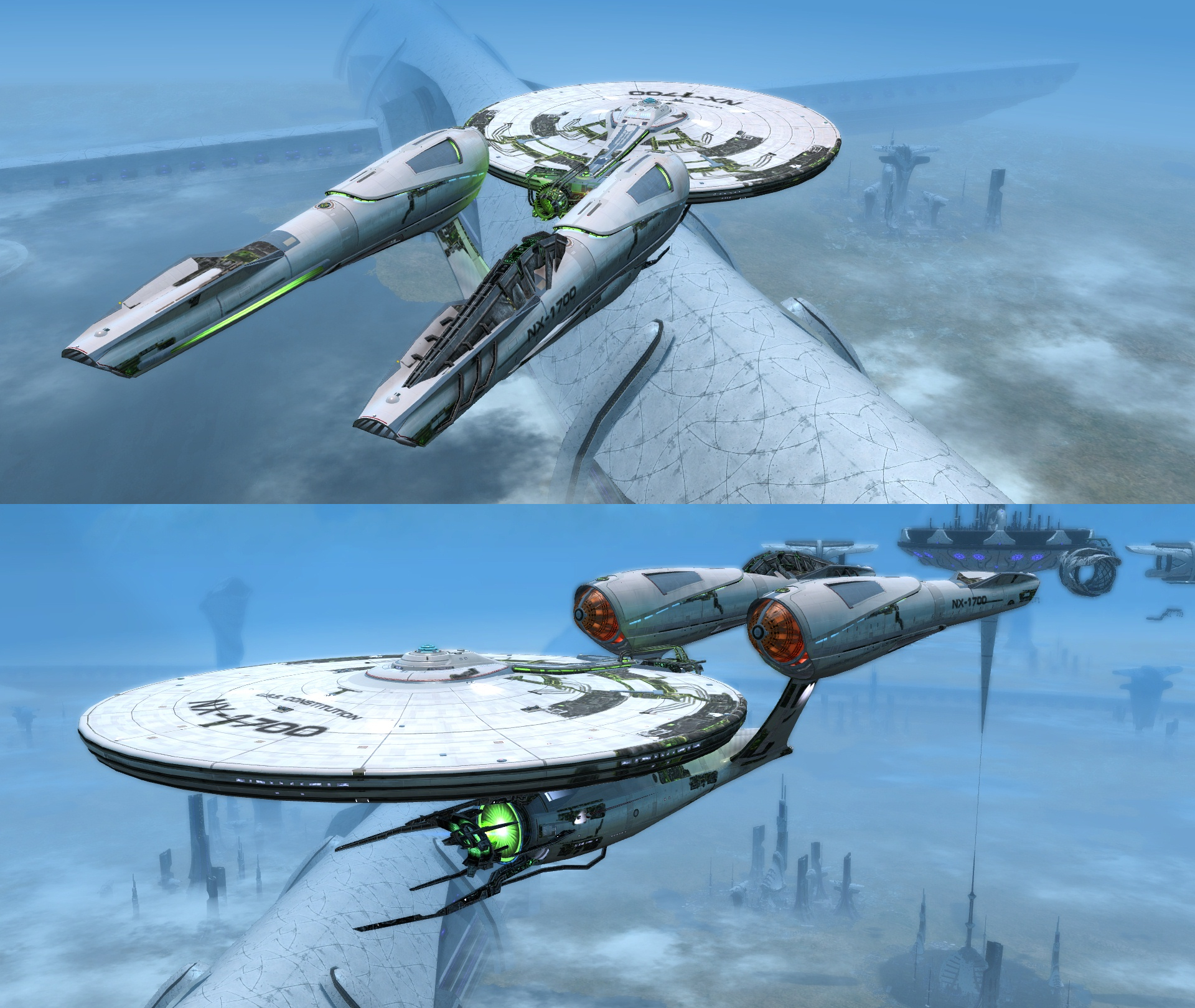 ↑ The Kelvin Divergence vanity shield visuals differ between Federation and Klingon ships. For Federation characters the Einstein-class material is used, and for Klingon characters the Kelvin D7-class vessel material is used. Romulan and Jem'Hadar characters share the material of their allegiance choice.